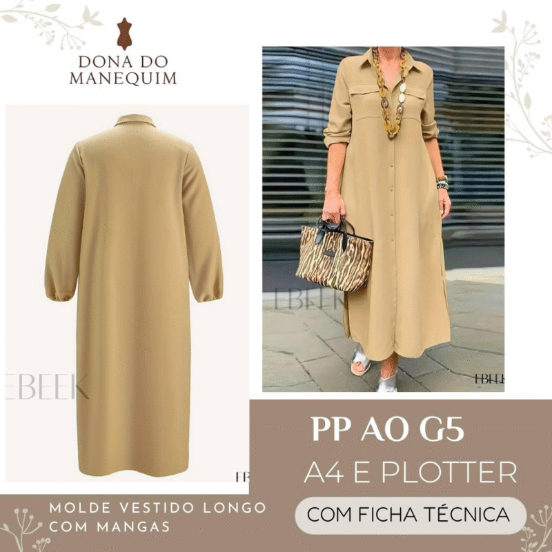 MOLDE VESTIDO LONGO COM MANGAS