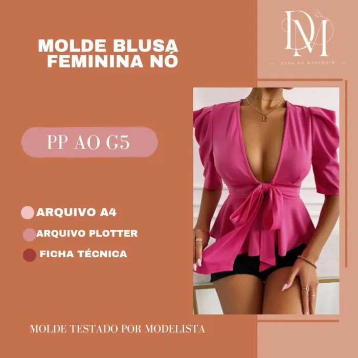 Molde Blusa Feminina Nó (PP ao G5) em PDF