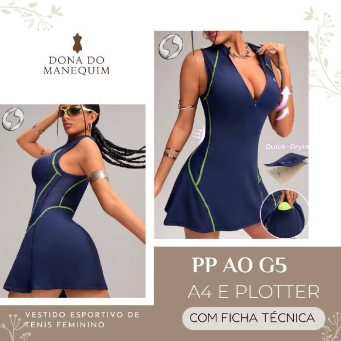 MOLDE VESTIDO ESPORTIVO DE TENIS FEMININO em PDF