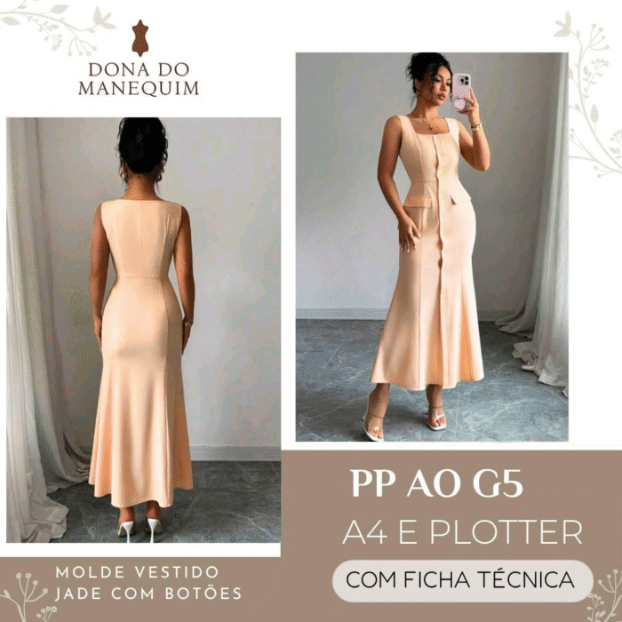 MOLDE VESTIDO JADE COM BOTÕES em PDF
