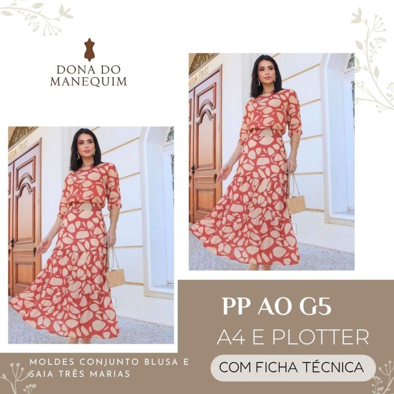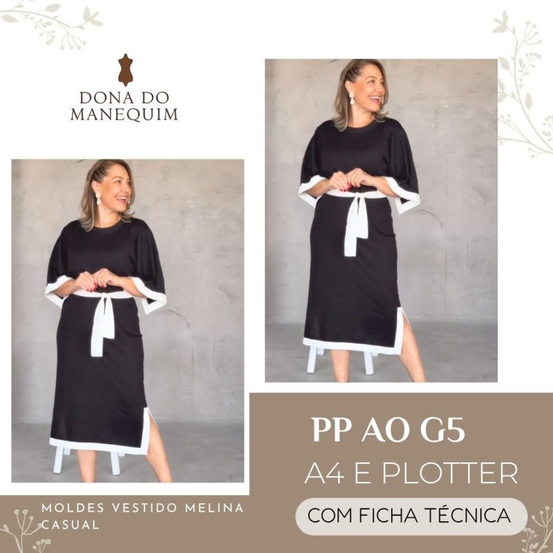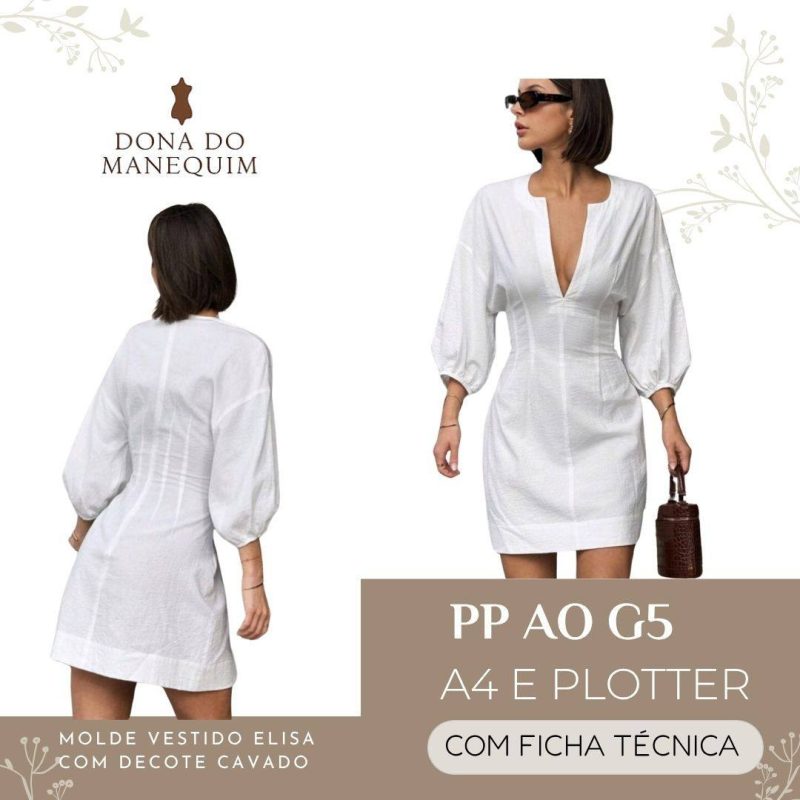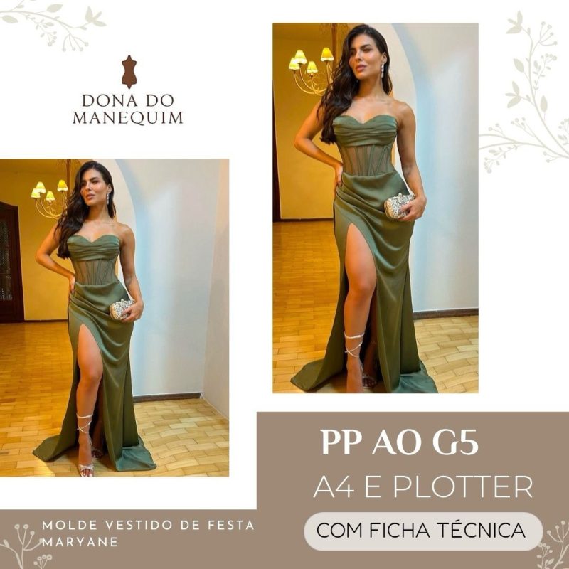 Molde Vestido Longo Ombro a Ombro de Crepe de Malha (P ao G) em PDF Agrupado