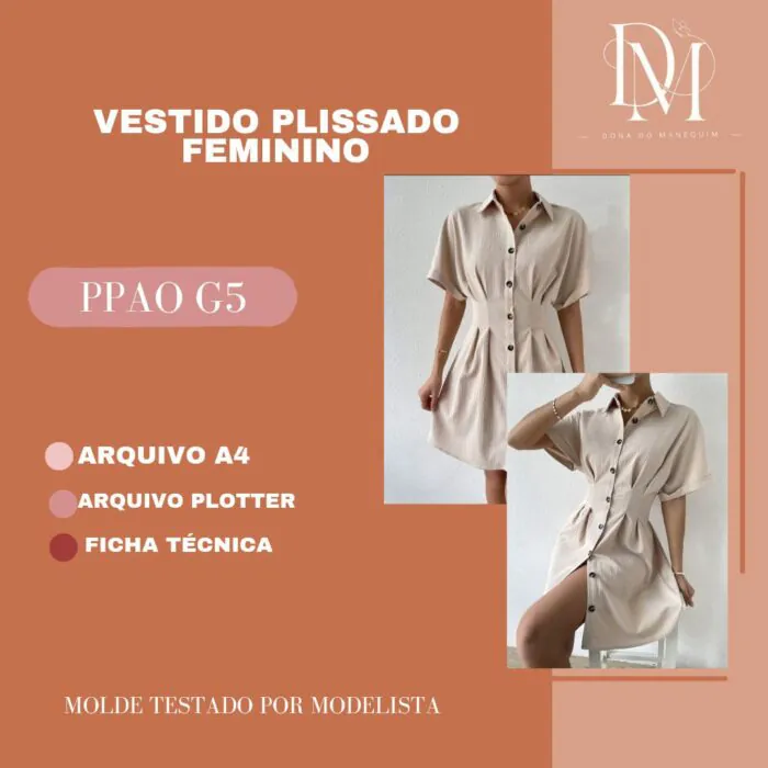Molde Vestido Plissado Feminino (PP ao G5) em PDF